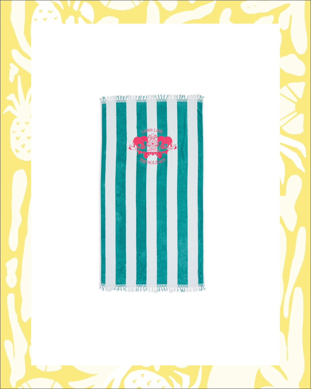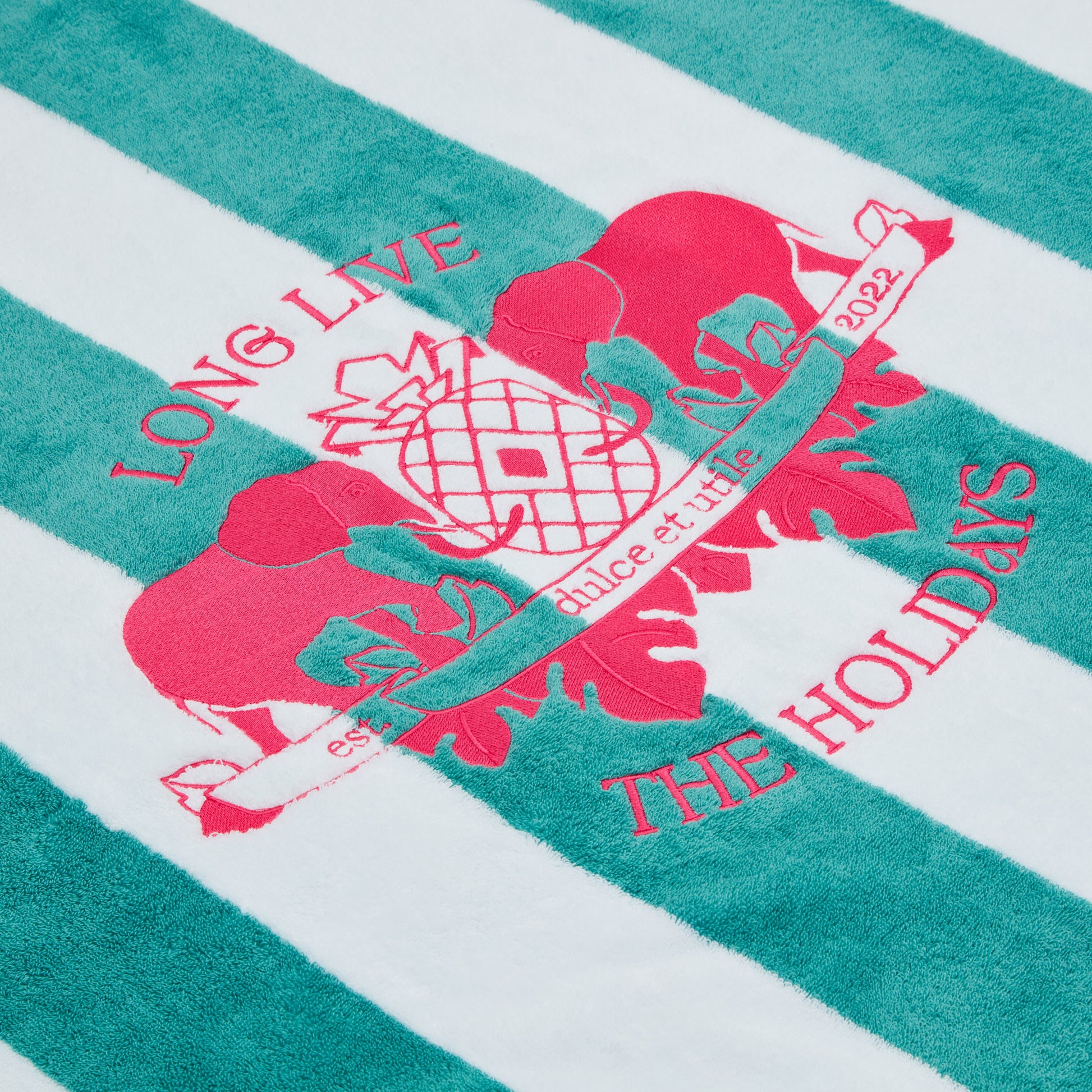 - Design : strisce bianche e acquamarina con logo ricamato "Lunga vita alle feste"